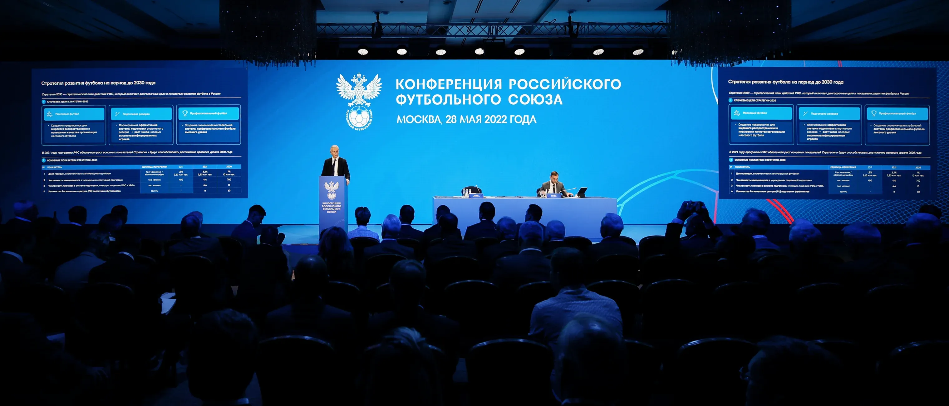 На конференции РФС встречаются представители региональных федераций и субъектов, чтобы подвести итоги и определить будущее российского футбола. Оформление мероприятия такого уровня должно выглядеть одновременно серьезно, стильно и, что немаловажно, фотогенично.
