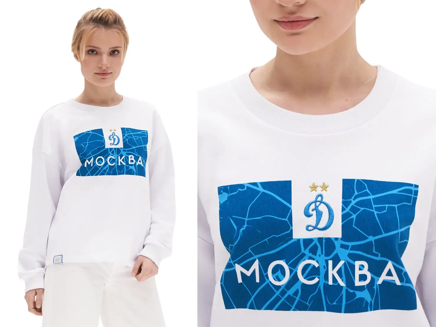 Логичным дополнением коллекции стали принты с картой Москвы и синей рамкой из классического флага движения «Динамо».
