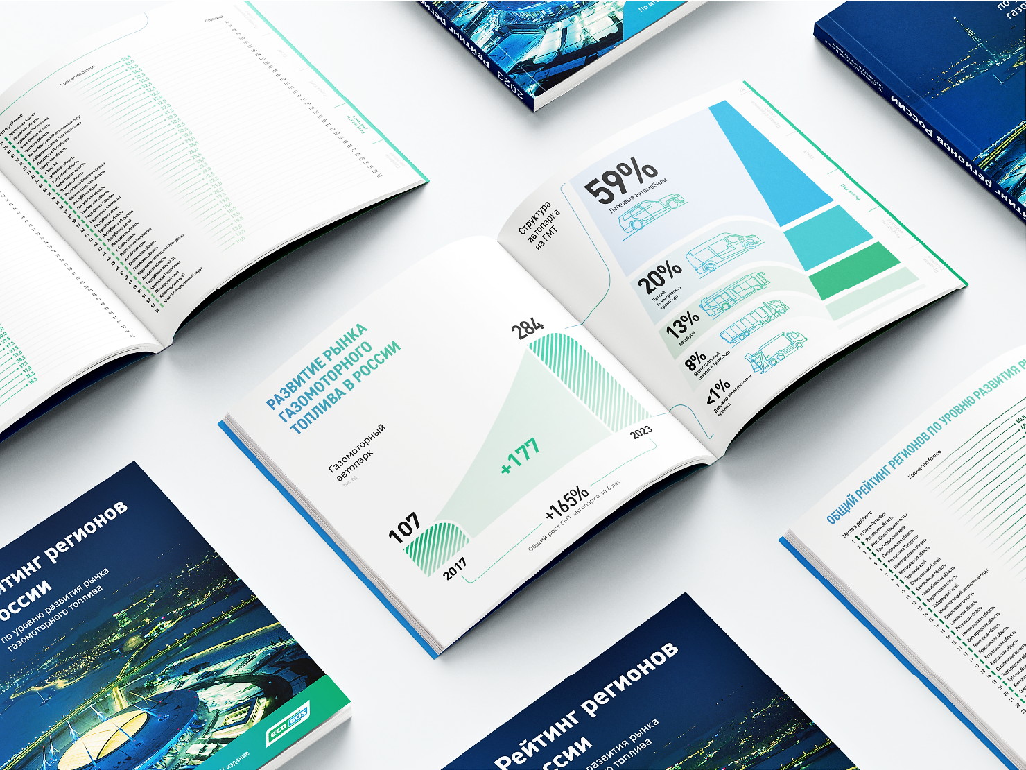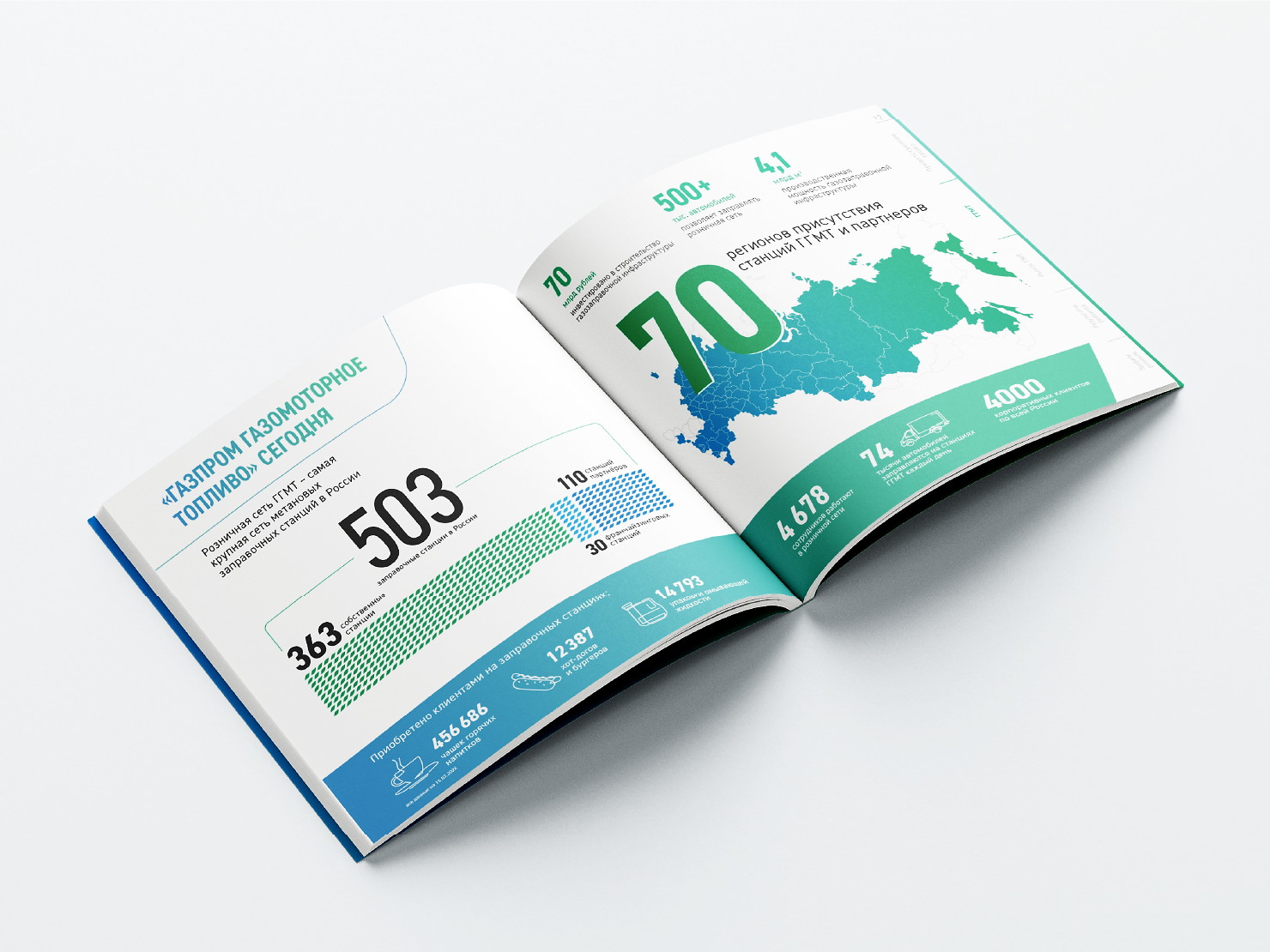 «Рейтинг регионов России» — это масштабное многостраничное издание, отражающее динамику роста и ключевые показатели подразделений компании «Газпром газомоторное топливо» по всей стране. Проект стал не просто аналитическим отчетом, а полноценным имиджевым продуктом, объединяющим стратегию, дизайн и современные полиграфические технологии.