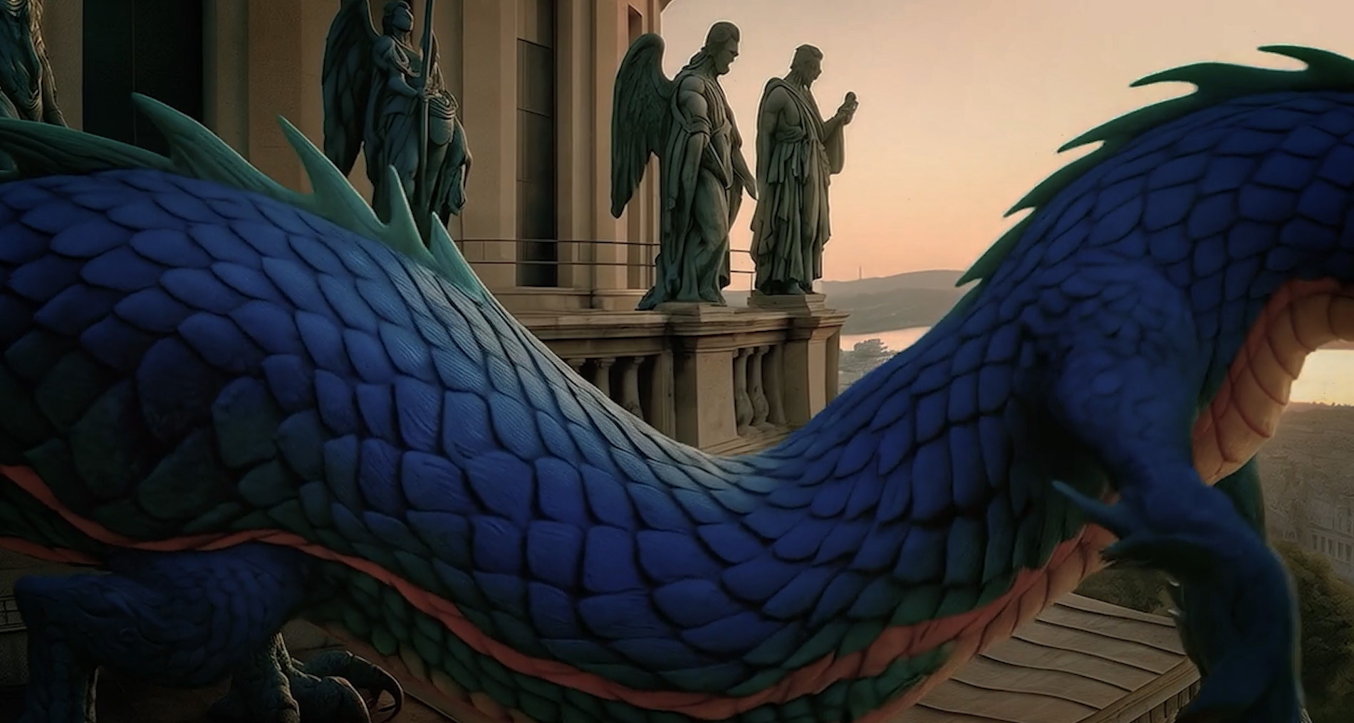 Мы создали объемное изображение дракона на основе древних графических рисунков и сделали анимацию. Все 42 секунды видео были сделаны с помощью искусственного интеллекта.