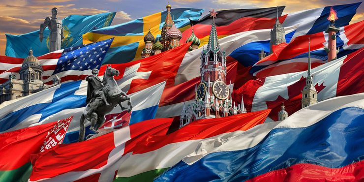 Паттерн с флагами — не менее важная и очень удобная часть стиля. Она использовалась и для рекламных носителей, и для оформления интерьеров и фасадов, превращая любое пространство в территорию чемпионата мира.