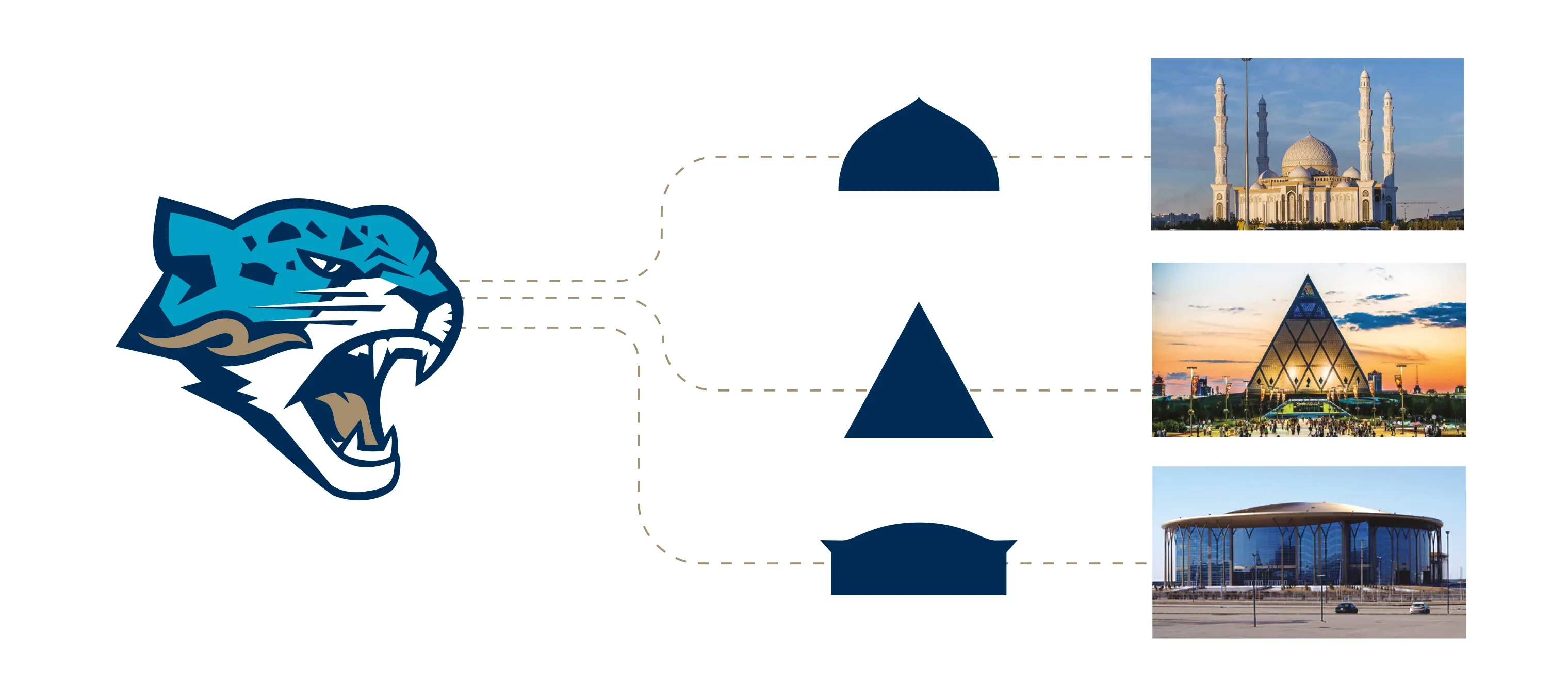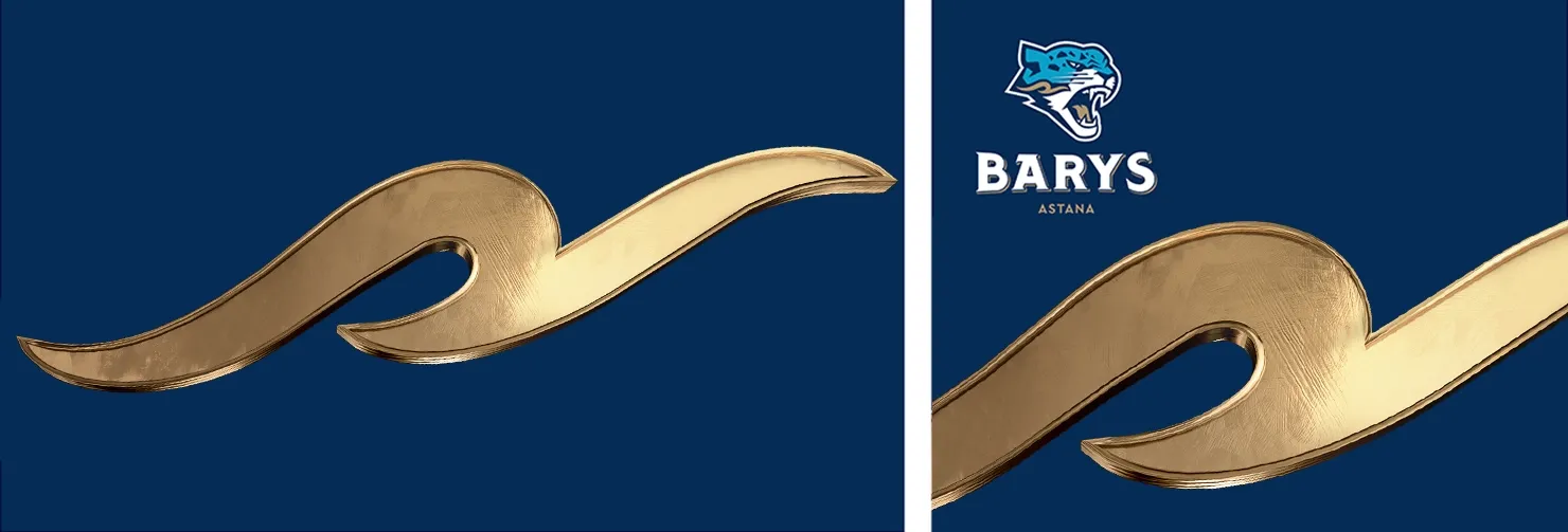 Астана — удивительно красивый город, который восхищает своим колоритом. Столица сама подсказала нам образы, которые мы зашифровали в пятна барса: Дворец мира и согласия, мечеть «Хазрет Султан» и «Барыс Арену». Вдохновившись традиционными казахскими орнаментами, на свет появился графический элемент, символизирующий степной ветер. Он не только занял центральное место в логотипе, но и стал основным элементом айдентики. Его дополнительная 3D-версия используется в анимации, а также в качестве декоративного элемента.