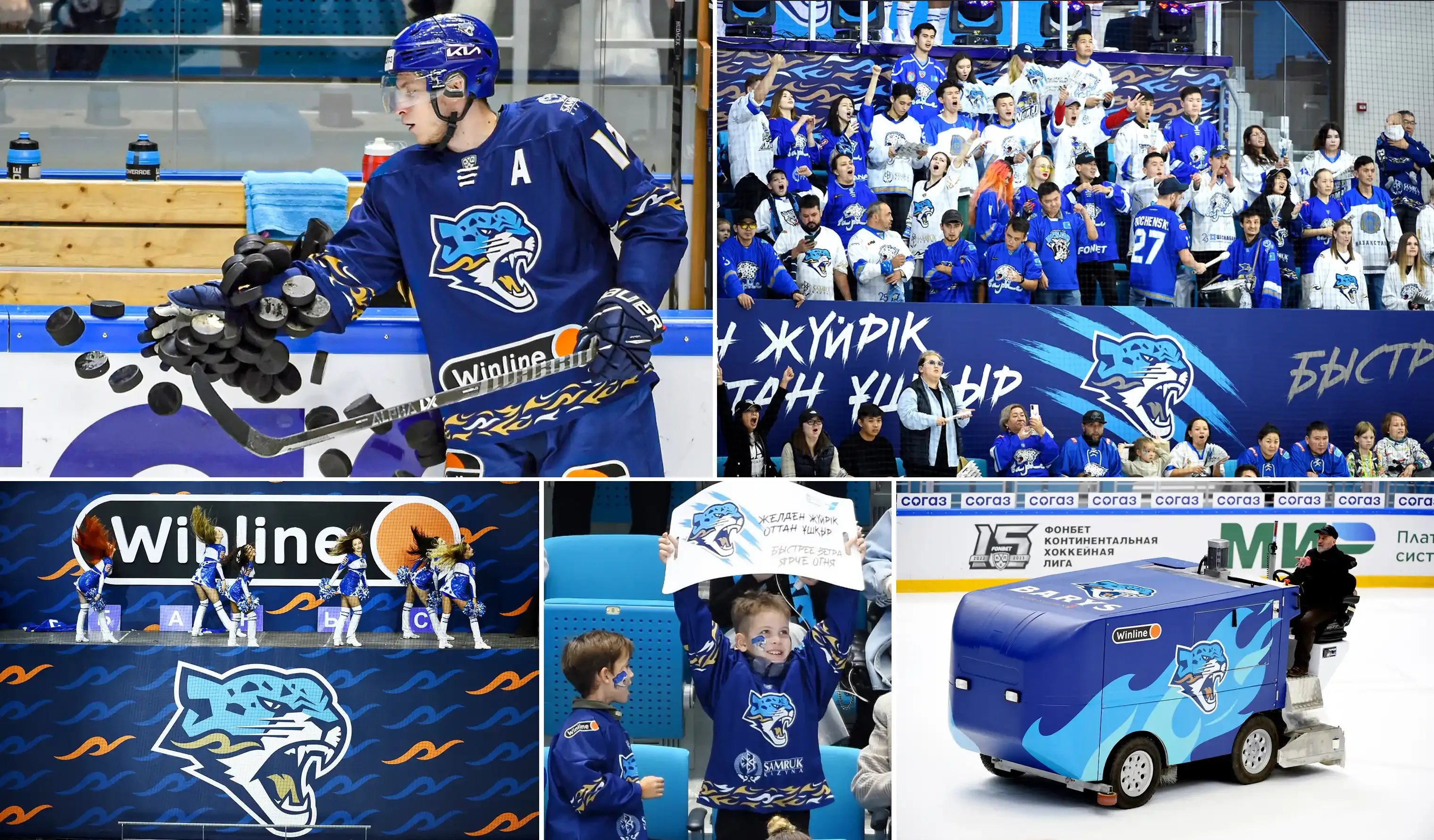 Снежный барс — несменный талисман команды, который мы сохранили и бережно стилизовали в соответствии с визуальным трендами. Персонаж обрёл толстые контуры, рубленые формы, острые линии, став более динамичным. Барс сменил окрас. Теперь он выполнен в цветах флага Казахстана.