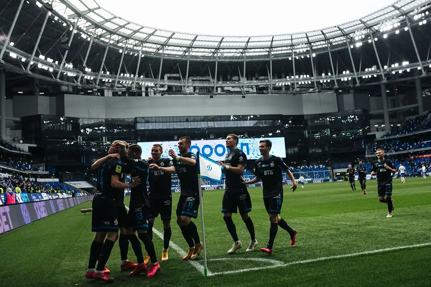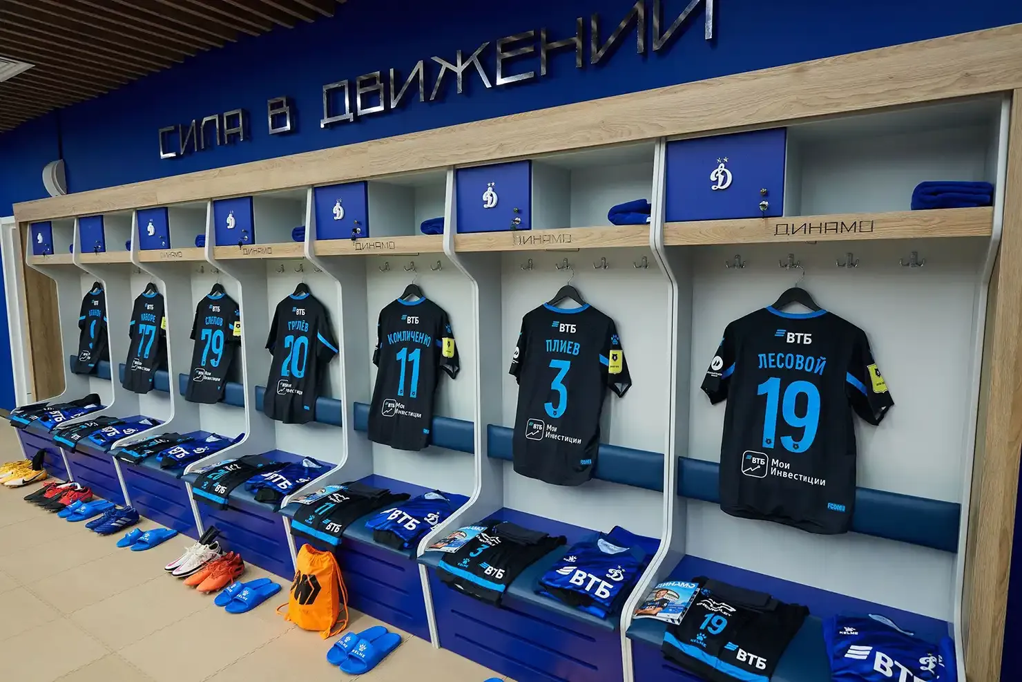 Контрастные вставки выполнены в оттенке «электрик», одном из важнейших динамовских цветов в советской традиции.