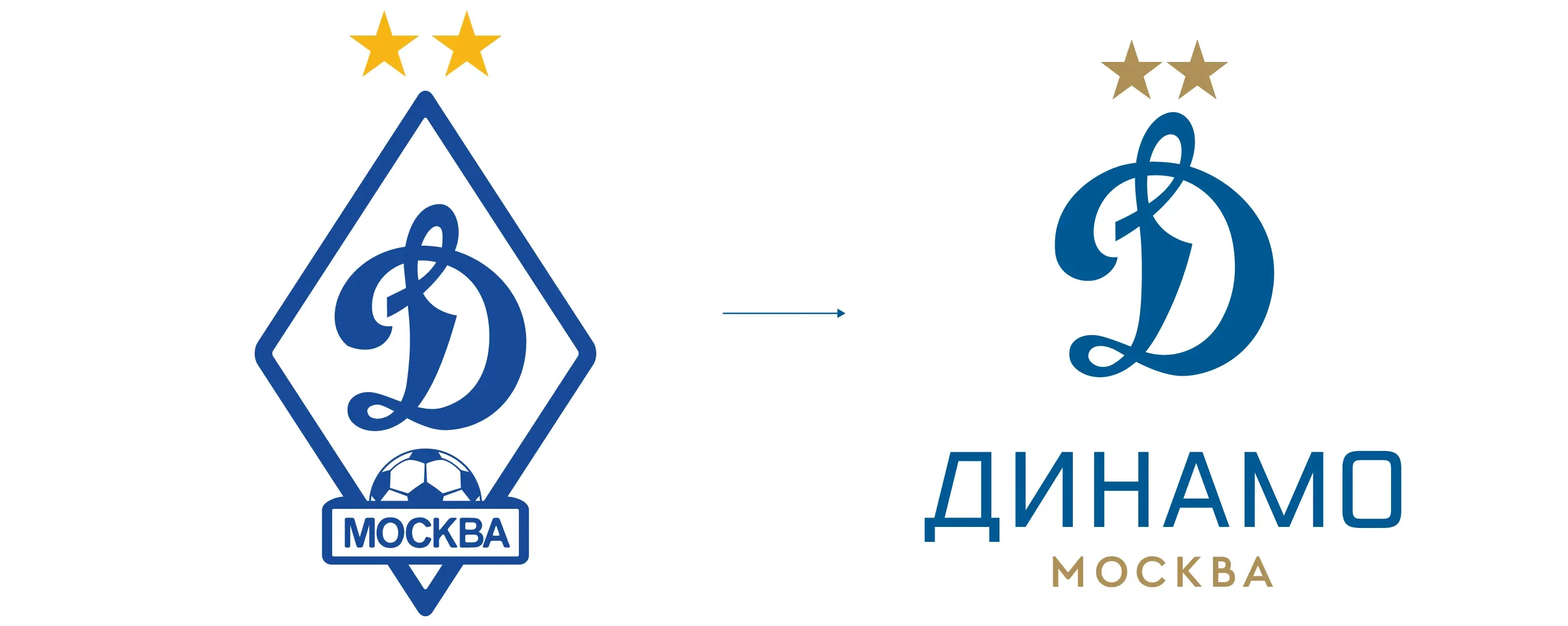 Для обновления знака было принято решение отказаться от ромба и футбольного мяча и разделить его на две самодостаточные сбалансированные составляющие: литеру со звездами и вордмарк, состоящий из двух слов — «Динамо» и «Москва».
