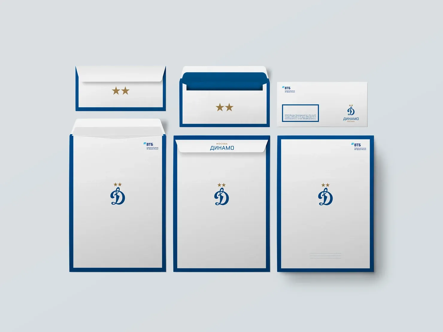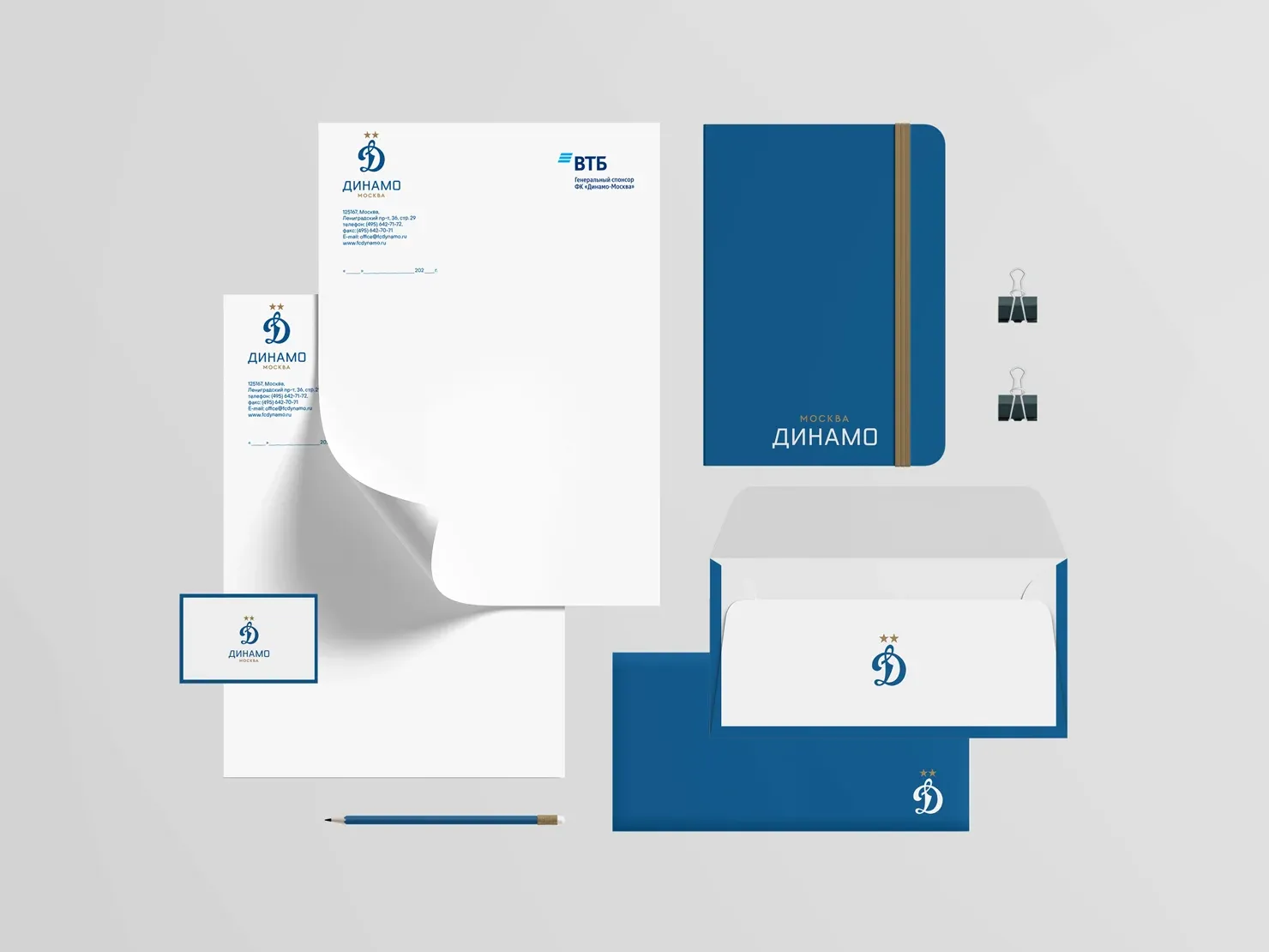 Дополнительным элементом, формирующим айдентику, стал синий кант динамовского флага — еще одного важнейшего символа клуба, практически не изменившегося за 100 лет истории общества. Обрамление может использоваться самостоятельно, а при необходимости быть дополнено литерой с вордмарком.