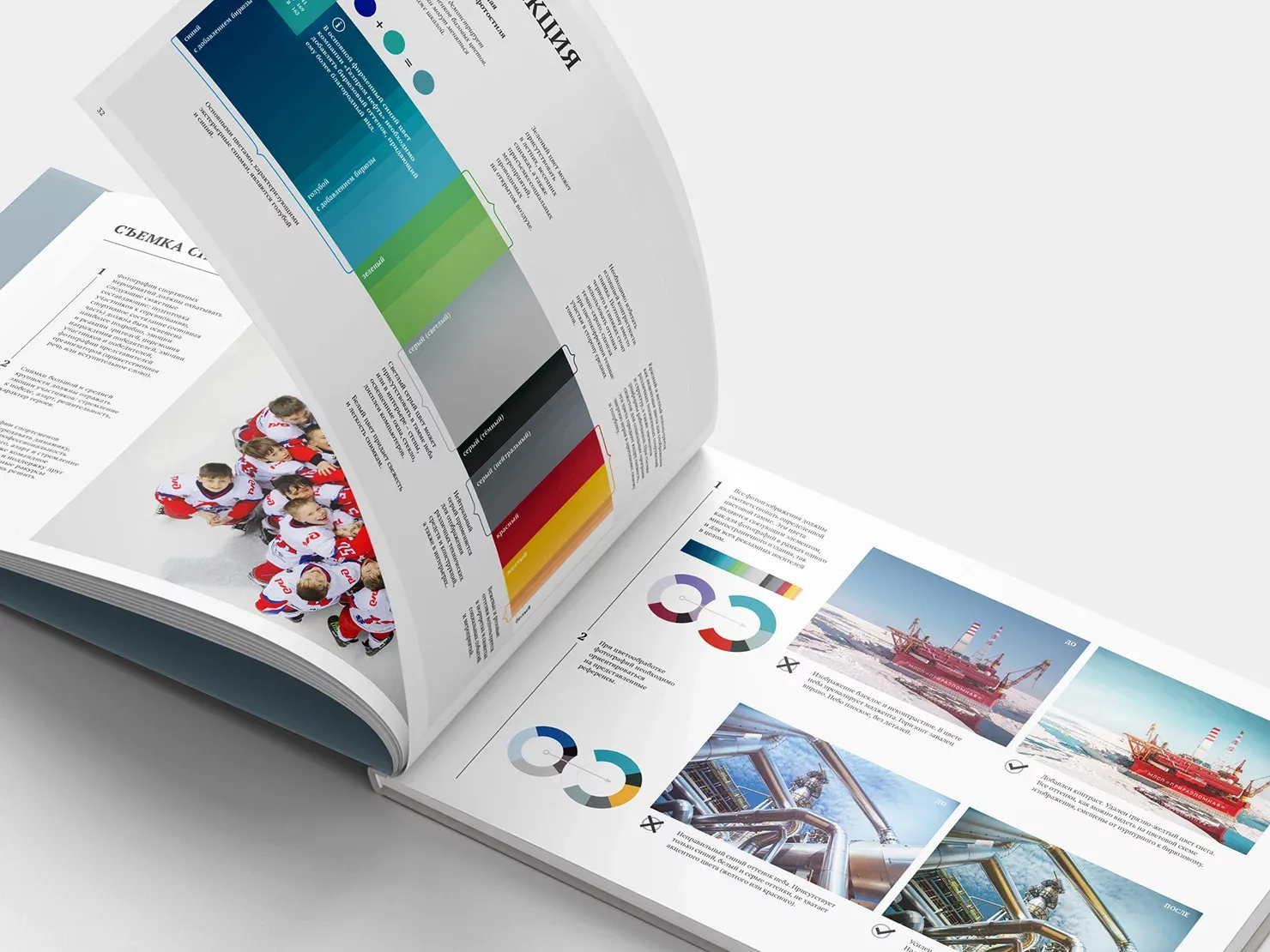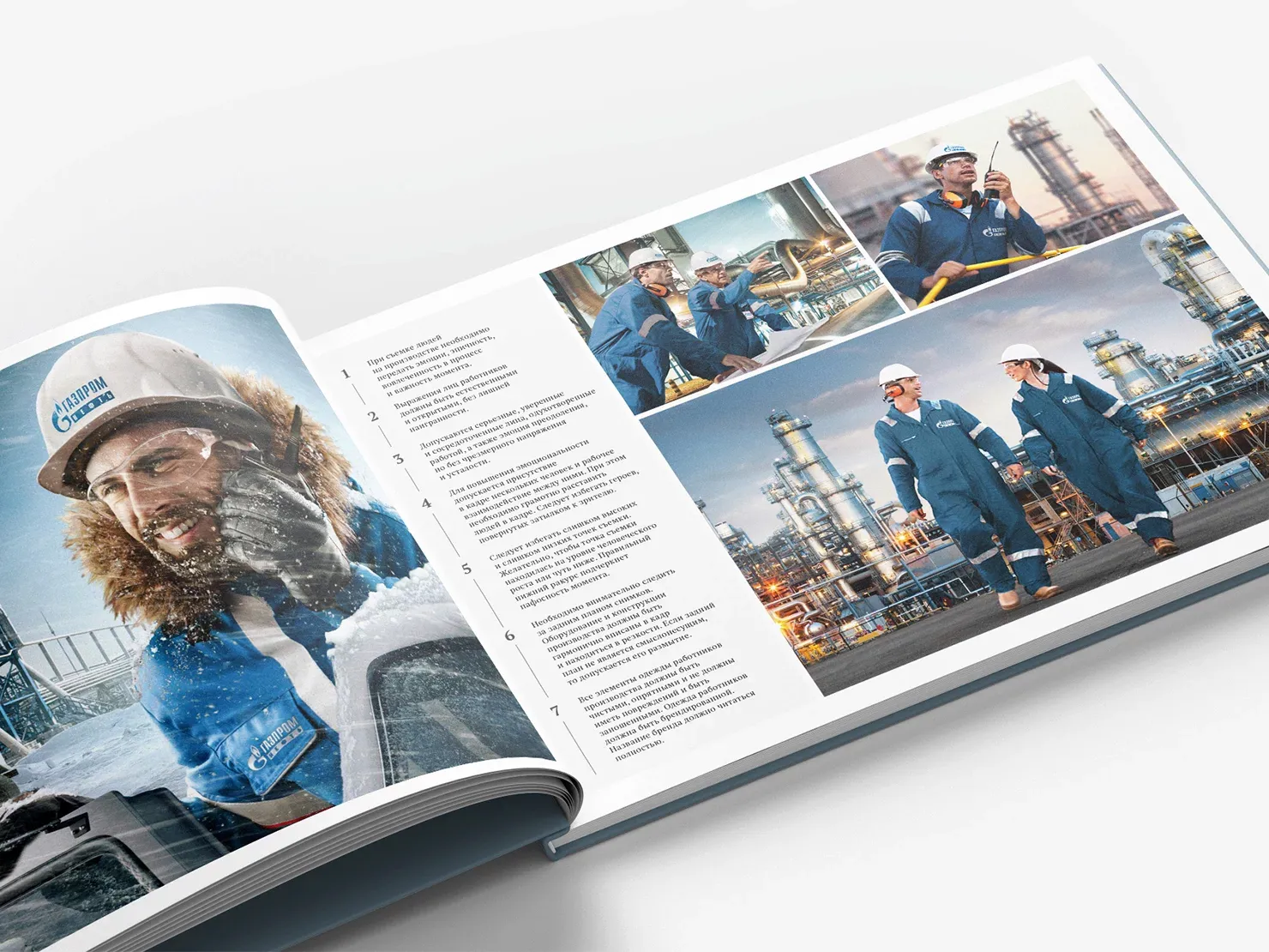 Как брендбук или гайдлайн в айдентике, руководство по созданию фотоматериалов разрабатывается с целью закрепить единый фотостиль для различного рода фотосюжетов. Данное руководство позволяет креативным подрядчикам Газпром нефти соответствовать единым требованиям фотостиля, а также более точно отражать и поддерживать имидж компании.
