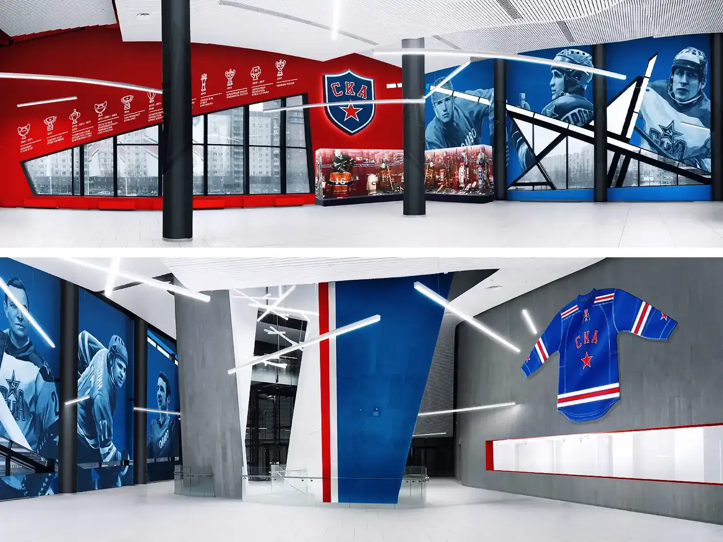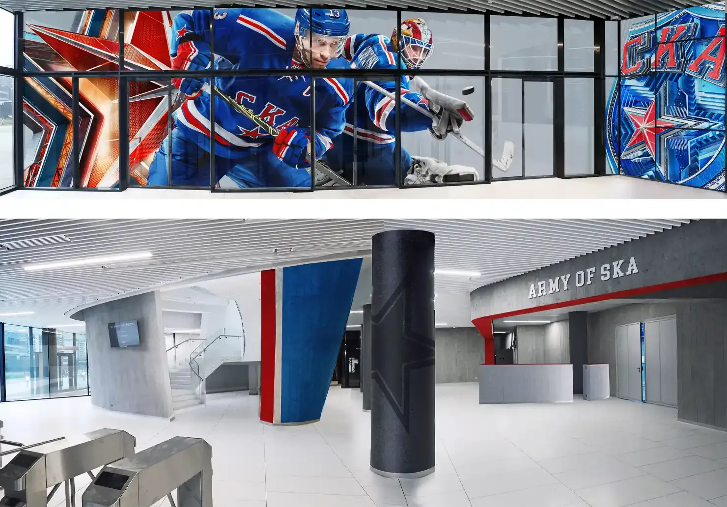 Дизайн интерьеров и брендирование многофункционального спортивного комплекса Хоккейный город на базе ХК СКА