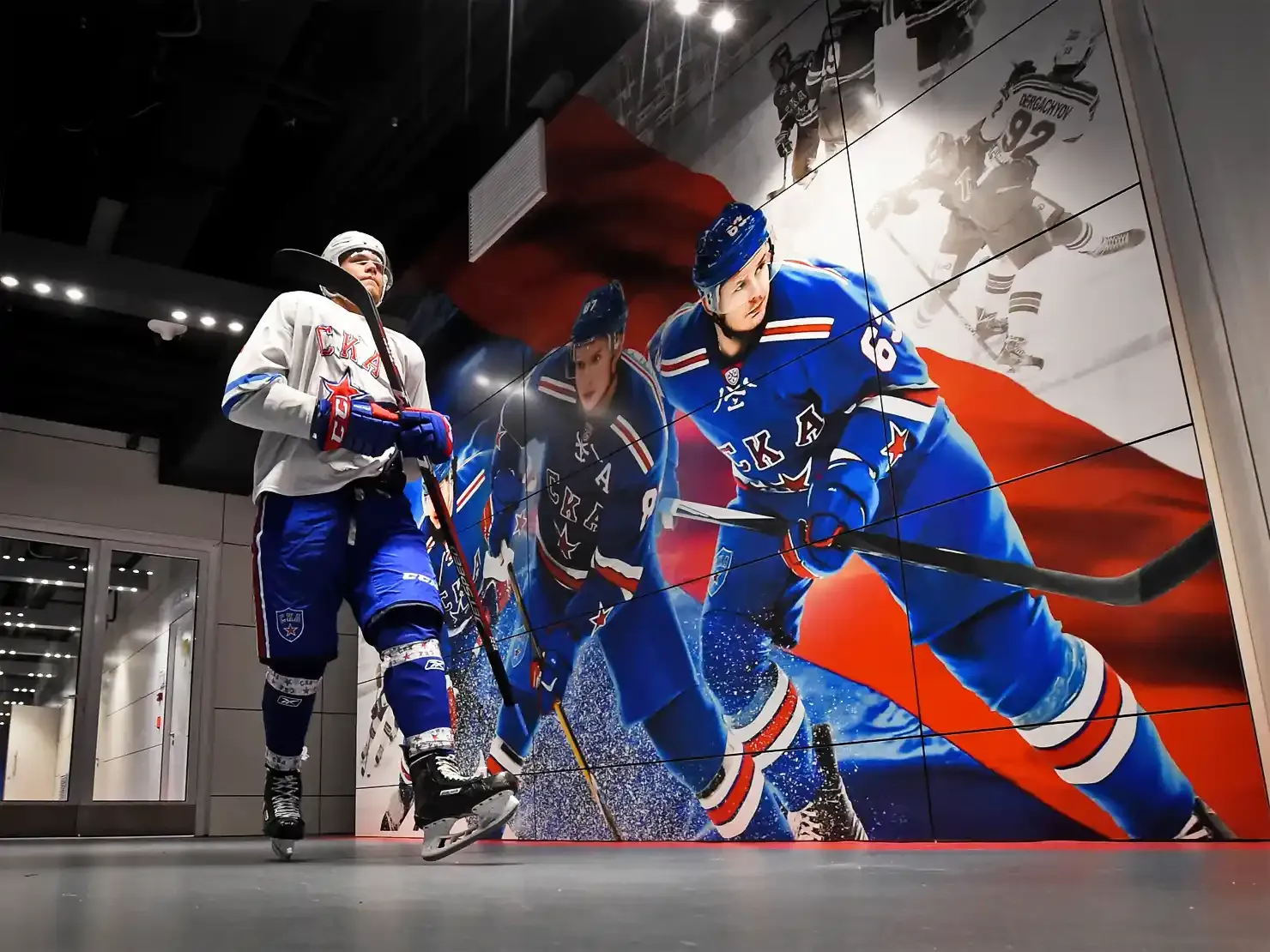 На стенах коридоров, ведущих на лед, появились изображения звезд клуба, а на заднем плане исторические кадры хоккейных сражений.