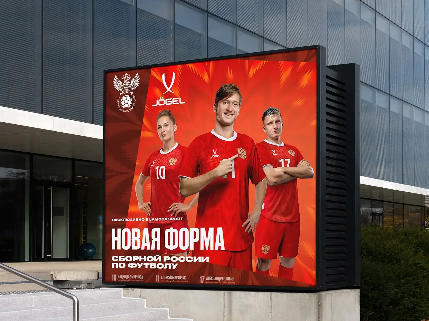 Наша команда чувствовала в масштабном проекте по запуску формы сборной России по футболу. Мы разработали рекламную кампанию с множеством материалов, которые распространялись в наружной рекламе, социальных сетях, в сети магазинов Lamoda.