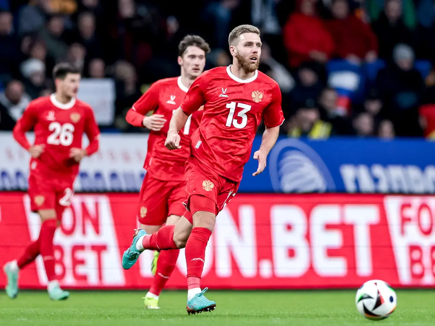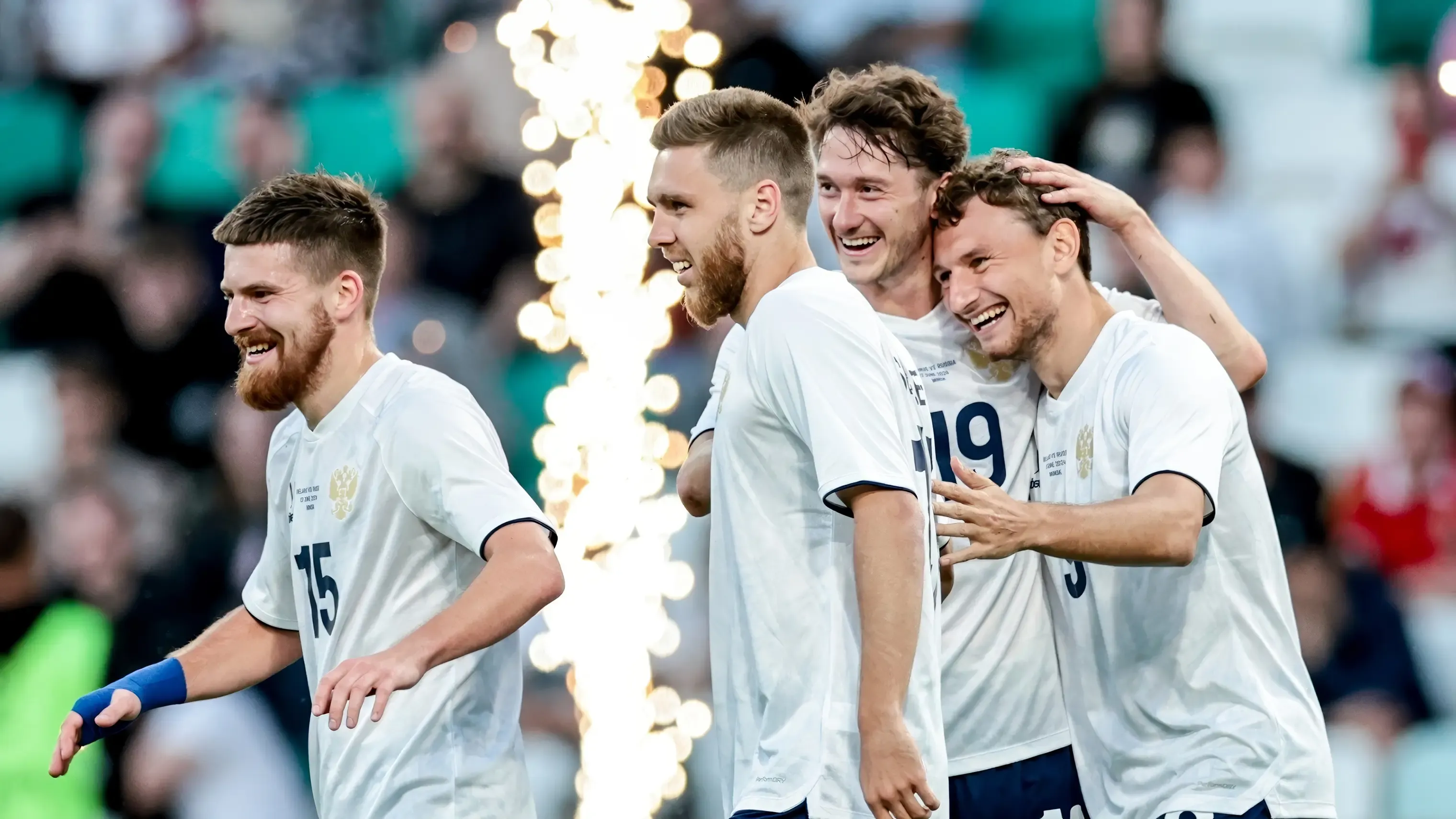 Также наше агентство занималось оформлением и продвижением первого международного матча, который был сыгран в новой форме. В том числе специально для первых матчей сборной в новой форме мы разработали графику для трансляций на Матч ТВ.