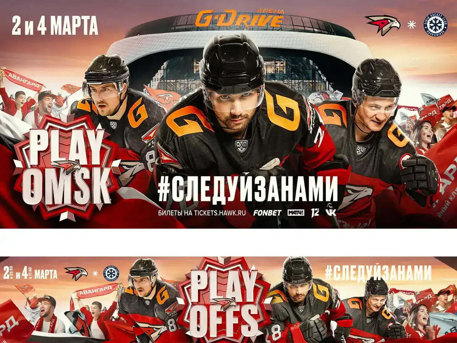 Креативная концепция PLAYOMSK, посвященная выходу ХК Авангард в плей-офф после легендарного возвращения в родной город