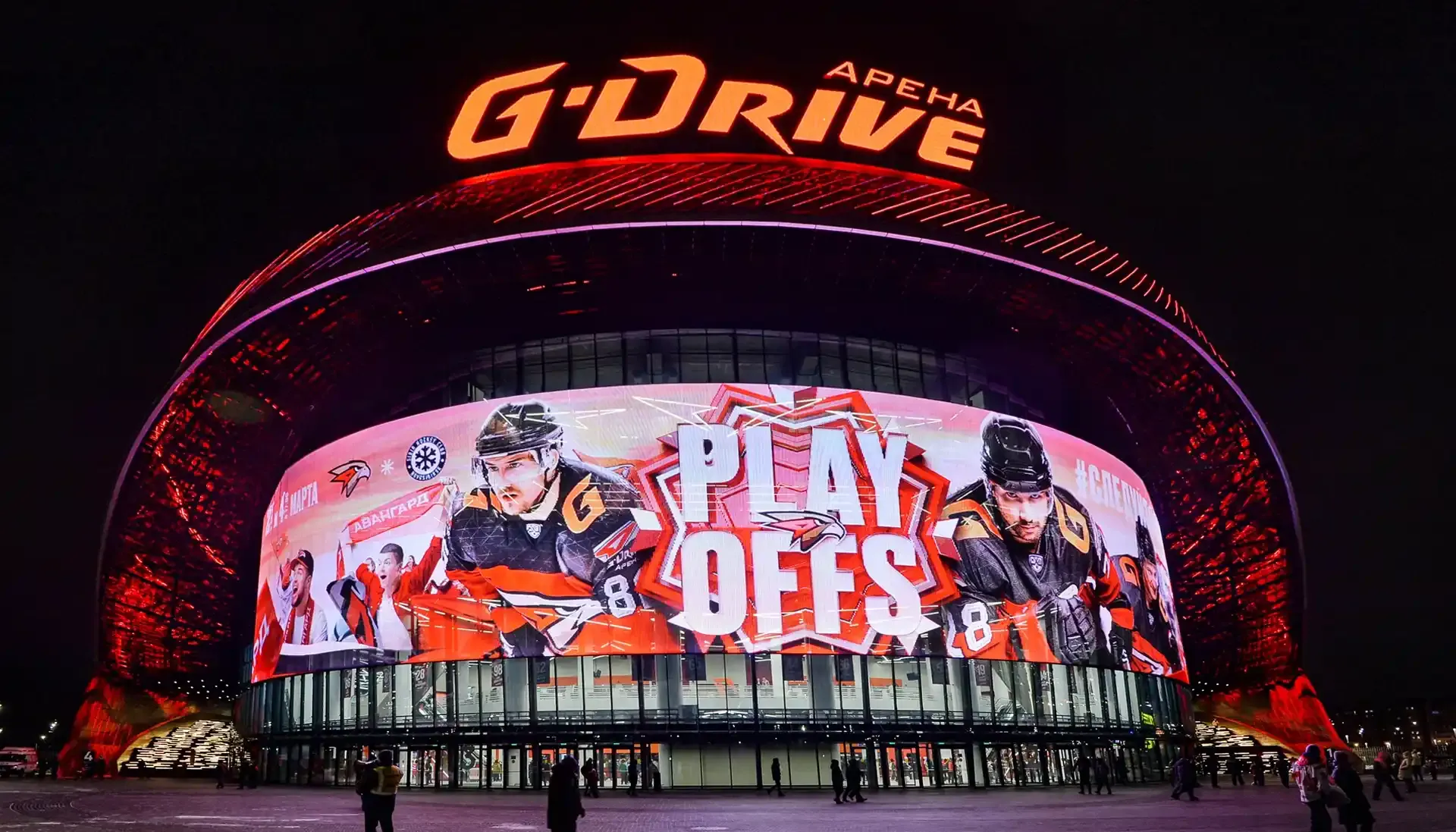 Разработанный стиль использовался в оформлении афиш и соцсетей. Анимированная эмблема стала частью масштабного лайт-шоу, которое проходило на льду перед матчами. Моушн-графика транслировалась на огромном медиафасаде «G-Drive Арены», приковывая взгляды болельщиков.