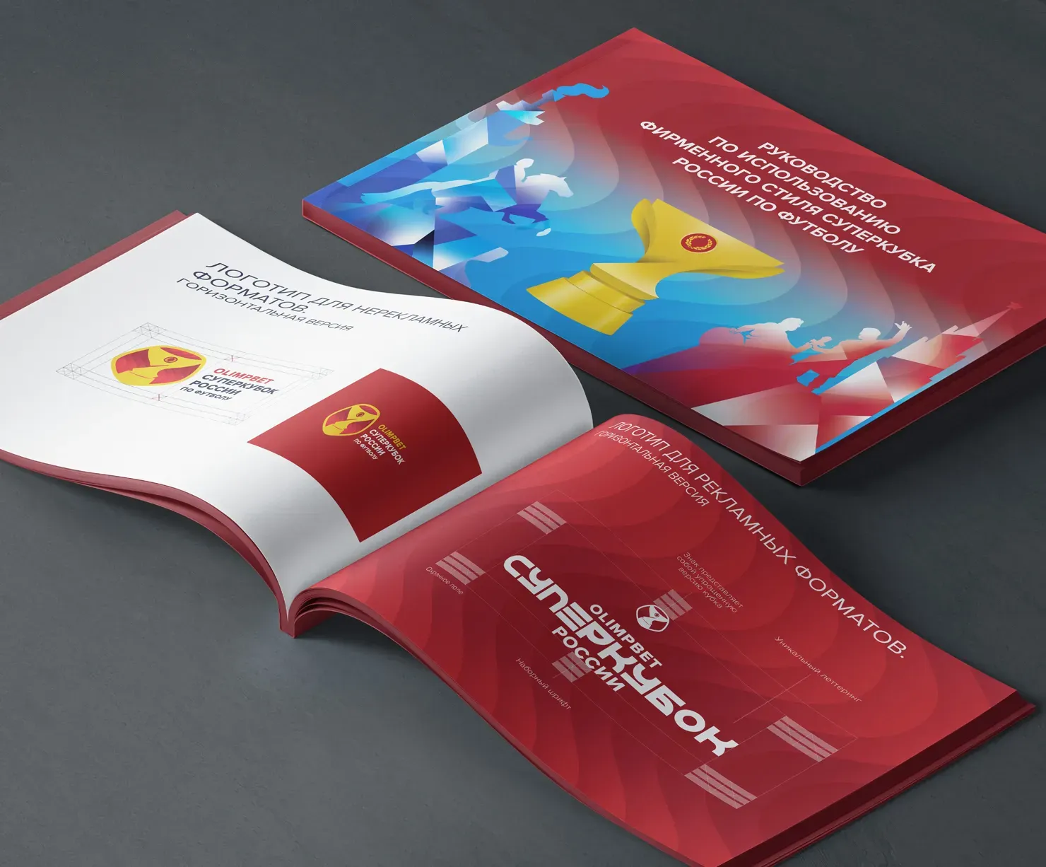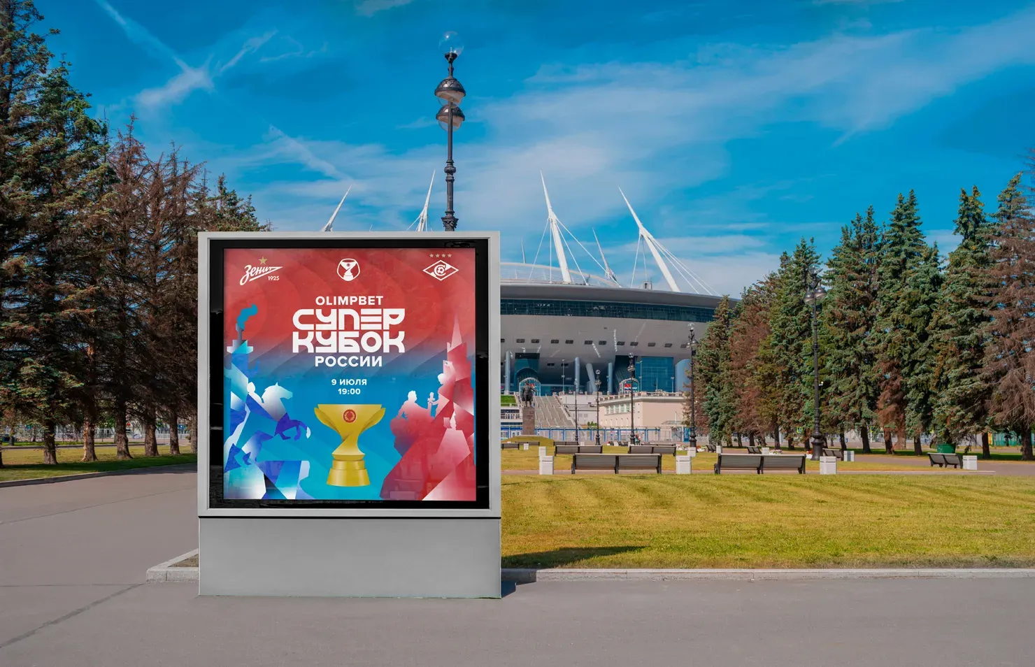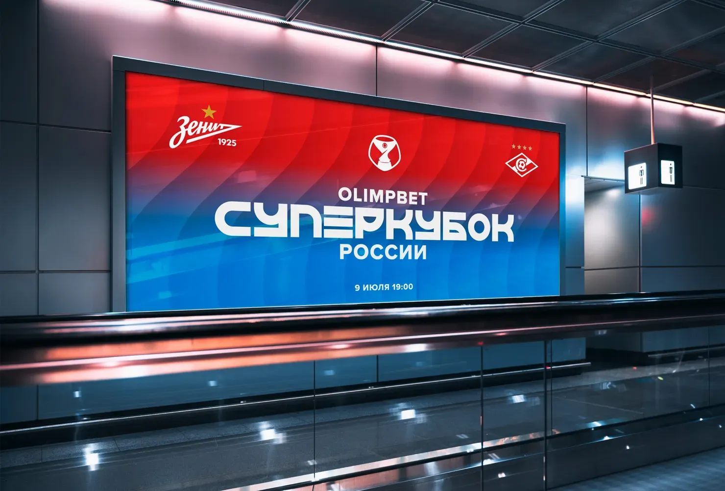 В матче встретились «Зенит» и «Спартак». Поэтому центральной темой фирменного стиля стало противостояние Петербурга и Москвы. В градиенте используются фирменные цвета клубов — голубой и красный. Набор иллюстраций включает в себя символы городов, продолжая тему соперничества.