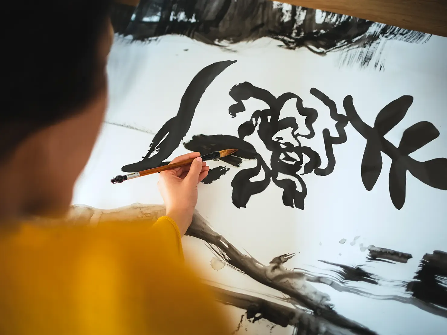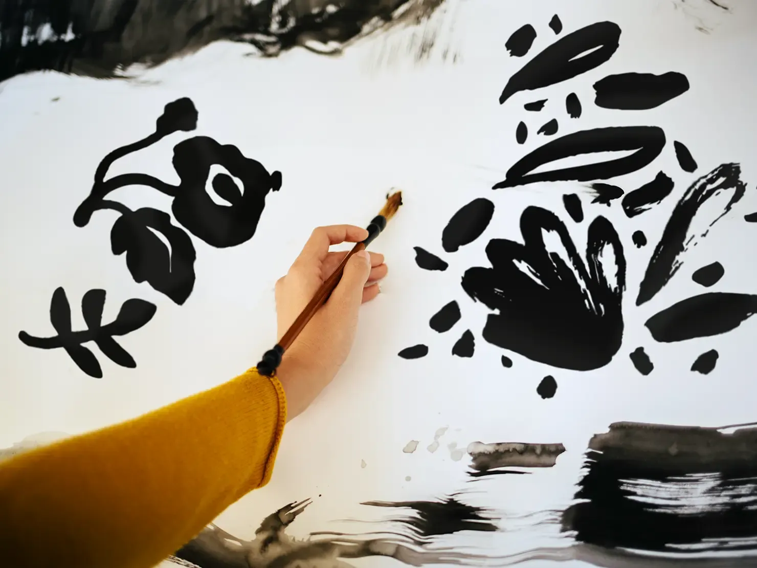 В основе цветочного паттерна лежит экспрессивное изображение нарисованное тушью от руки.